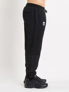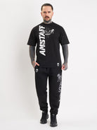 | Die Sweatpants ist vollständig in Schwarz gehalten und wird durch graue Prints akzentuiert. Auf dem Bein befindet sich ein großflächiger vertikaler Print mit Amstaff Schriftzug und dem offiziellen Amstaff Brandlogo. Ergänzt wird das Design durch einen kleineren Logo-Print im oberen Beinbereich. Seitliche Einschubtaschen bieten Platz für Alltagsgegenstände, zusätzlich ist auf der Rückseite eine Gesäßtasche integriert. Der elastische Bund ist mit einem Kordelzug ausgestattet und erlaubt eine individuelle Weitenregulierung. Elastische Bündchen an den Beinabschlüssen sorgen für einen sauberen Sitz. |